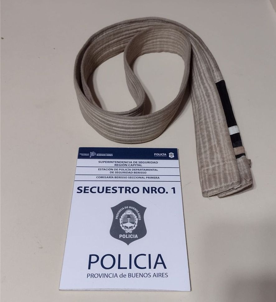 En estas circunstancias, la fiscalía actuante solicitó ante el juzgado de Garantías una orden de registro en el domicilio del acusado, donde incautaron un cinturón de tela gruesa y color blanco, el cual “utiliza el imputado para practicar artes marciales, más precisamente jiu-jitsu”, revelaron las fuentes.