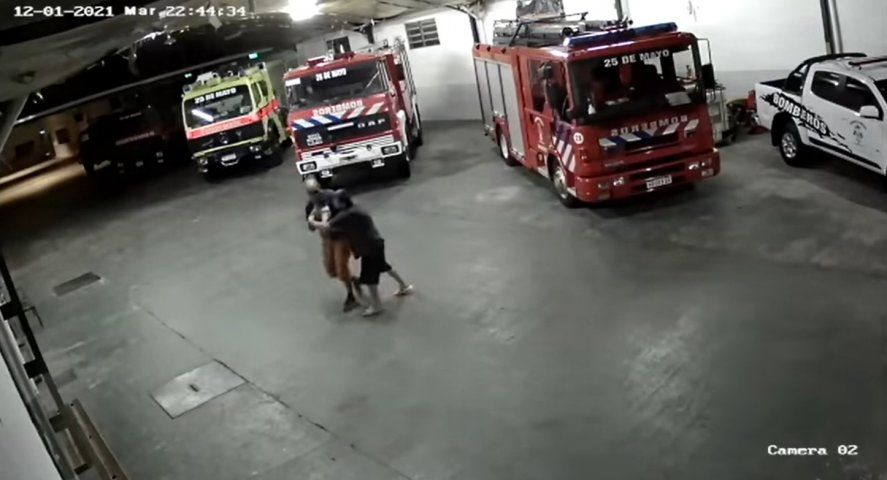 El rescate del bombero quedó registrado en las cámaras de seguridad del cuartel
