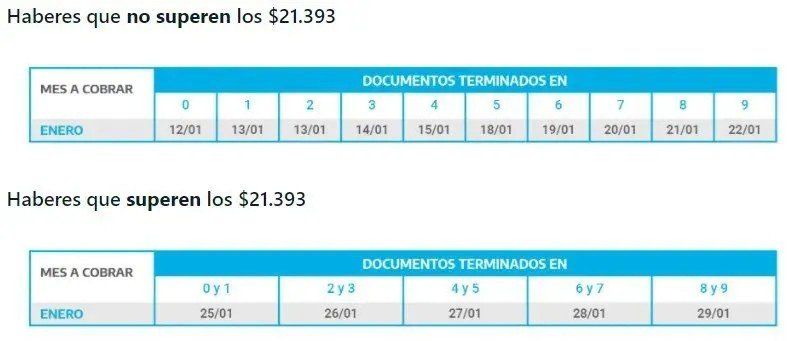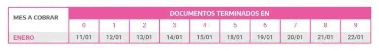 El calendario de pagos correspondiente al mes de enero continúa de esta forma: