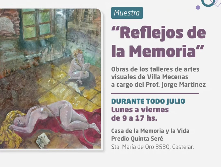 Además, esta semana se inauguró la muestra Reflejos de la Memoria en el marco del Aniversario de la Casa de la Memoria y la Vida, a 40 años de democracia ininterrumpida. Según detalló la organización del evento, las obras fueron realizadas en los talleres del Espacio de Artes visuales Villa Mecenas a cargo del profesor Jorge Martínez.