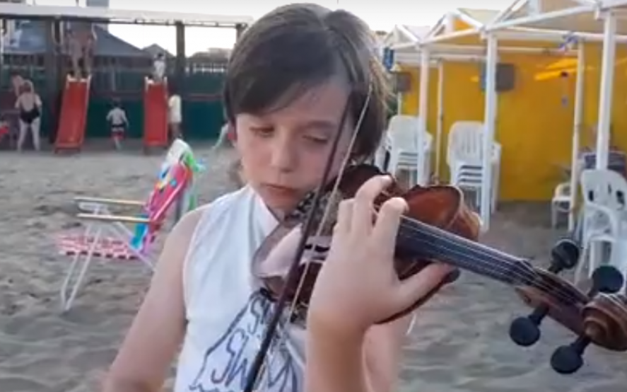 Juan José Kunert es un nene marplatense de 10 años que durante su estadía en la playa, sorprende a los turistas tocando el violín en plena tarde. Entre mates y sol, aprovecha para tocar melodías para la Orquesta Infanto Juvenil municipal que integra.