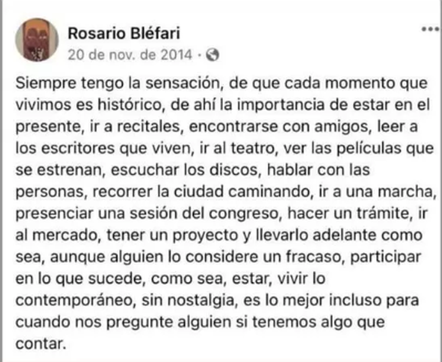 Este viernes 22 de septiembre artistas de todas las índoles se reunirán para homenajear a la música, poeta y actriz Rosario Bléfari en el Centro Cultural Laberinto Casa Club. Conocé algunos de los trabajos de la artista marplatense, que dejó un legado eterno.