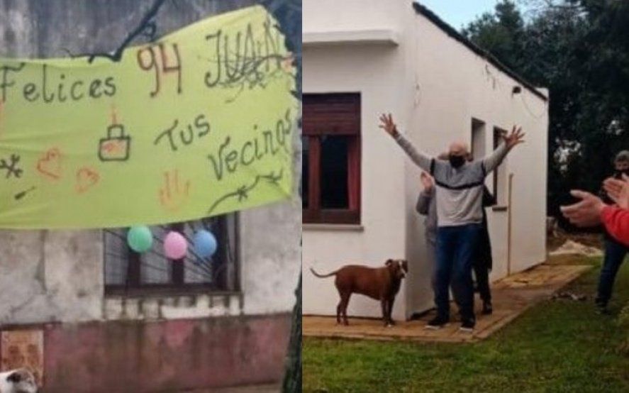 A pesar del aislamiento, un hombre de Lezama recibió sus 94 años de una manera especial: la mañana de su cumpleaños, descubrió que sus vecinos habían intervenido su casa con globos y carteles para acompañarlo y festejar con él, sin poner en riesgo su salud.