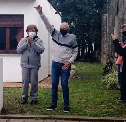 Respetando la distancia social necesaria y con tapabocas, algunos de sus vecinos más cercanos también se apostaron en el frente de la vivienda para cantarle el Feliz cumpleaños. Emocionado, el “Negro” salió a la puerta a saludar y agradecer, según relató y mostró en una serie de fotos el medio local Infozona.