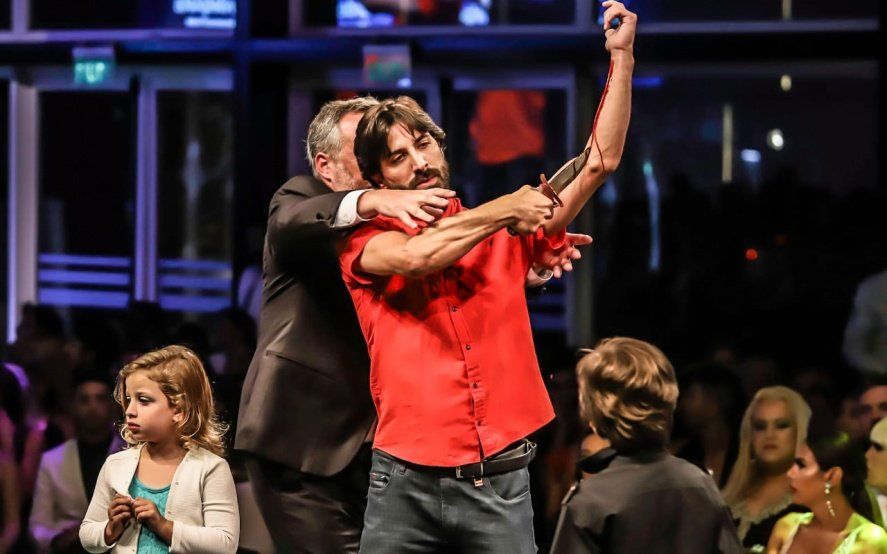 Una escena de película tuvo lugar anoche, mientras se desarrollaba la entrega de los premios Estrella de Mar en Mar del Plata: un director teatral subió al escenario a recibir un galardón y simuló cortarse las venas en vivo.
