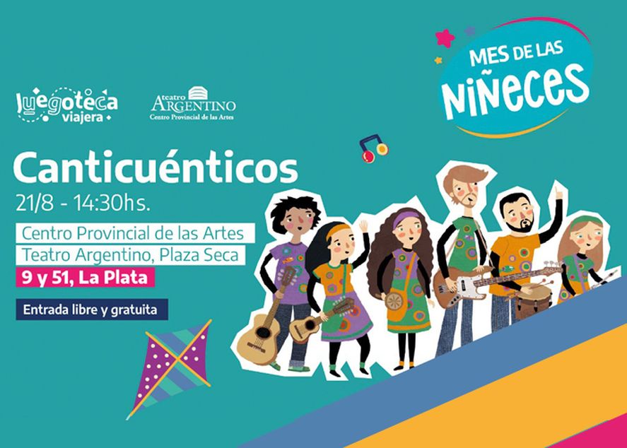 El domingo a partir de las 14:30hs en el Centro Provincial de las Artes Teatro Argentino de La Plata se presentará Canticuénticos con entrada libre y gratuita en la esquina de 9 y 51 de la ciudad de La Plata. Además, habrá una juegoteca. La propuesta es en el marco del Mes de las Niñeces y como continuidad de Vacaciones Divertidas, el ciclo de las vacaciones de invierno también organizado por el Instituto Cultural de la Provincia de Buenos Aires.