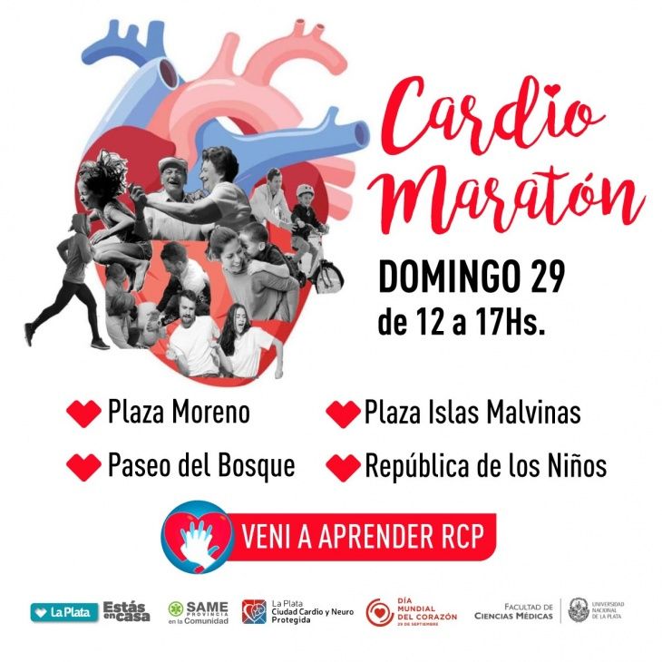 Según se precisó, la “Cardiomaratón 107” tendrá lugar en Plaza Moreno (12 y 51), Plaza Islas Malvinas (19 y 51), en la República de los Niños (Camino General Belgrano y 501) y en el Paseo del Bosque. Asimismo, en ‘la Repu’ funcionará una radio abierta con el objetivo de educar, inspirar y motivar a la gente a mantener sus corazones sanos.