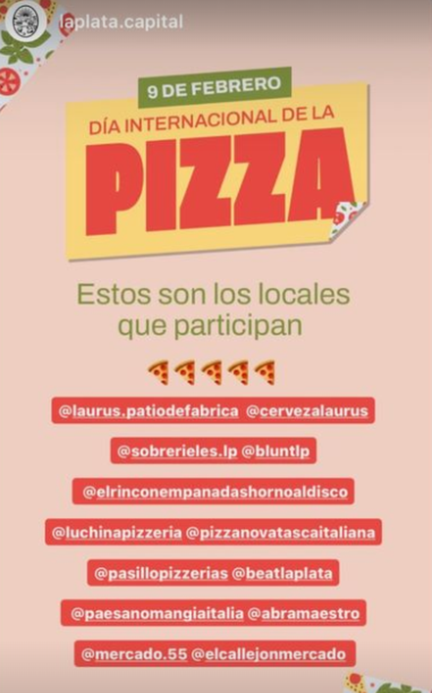 La celebración se originó en 2017 por iniciativa de la UNESCO, que nombró a la pizza como Patrimonio Inmaterial de la Humanidad, debido a su “rol social y la transmisión entre las diversas generaciones”. Y en Argentina entra, sin dudas, dentro del top 5 de las comidas preferidas.
