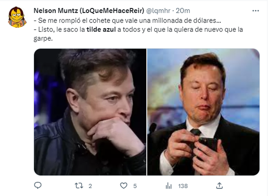 La cuenta @lqmhr hizo referencia a la explosión de la nave aeroespacial Starship, de la empresa SpaceX, de la que es dueño Elon Musk: