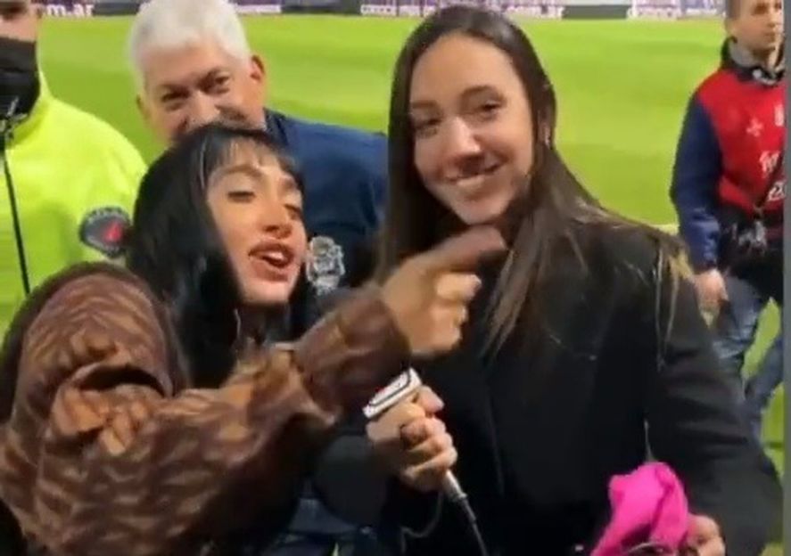 La artista se dio el gusto de entonar uno de los clásicos cantitos de tribuna para una periodista con el micrófono de ESPN.