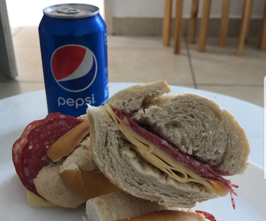 Está vez su mensaje fue mucho más costumbrista. Sólo incluía una fotografía con un sándwich de salame y queso partido en tres pedazos, y una lata de gaseosa.