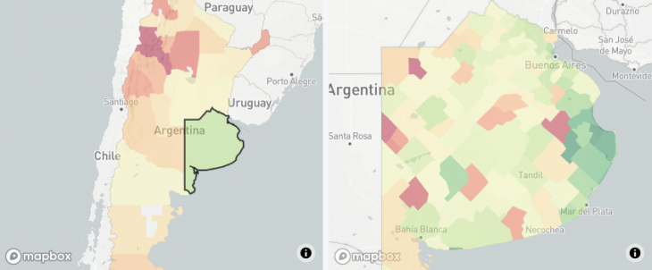 De acuerdo a la herramienta, que mide los datos mediante el uso de geolocalización de aplicaciones móviles, los municipios con menor densidad poblacional conquistan la punta: Tordillo, General Guido y General Lavalle, al sur del Río Salado, muestran mayor reducción de circulación que el resto, con porcentajes de 81,56%; 80,14% y 76,51%, respectivamente.