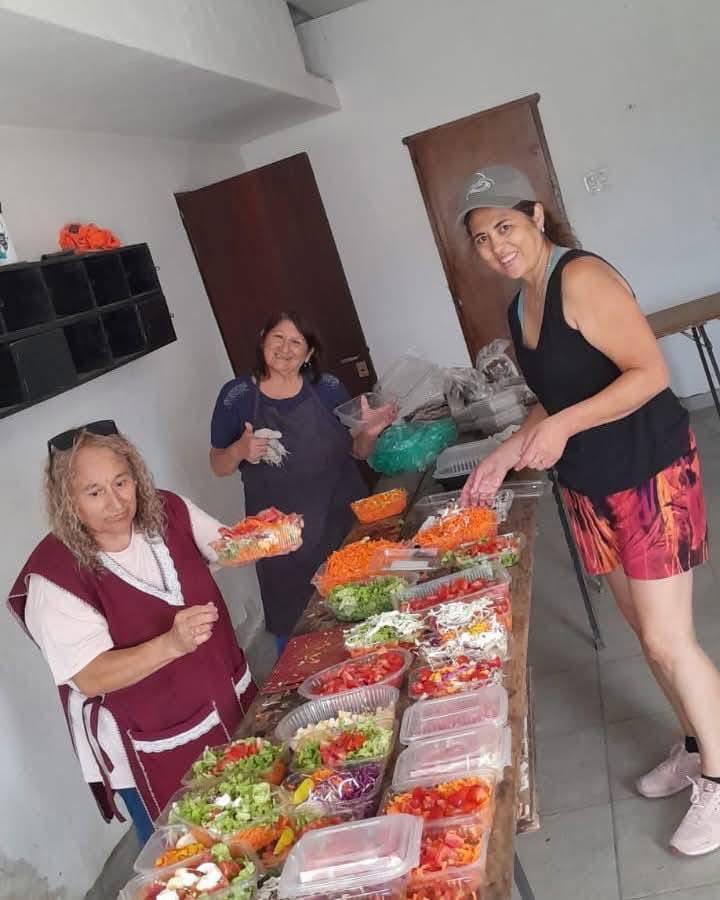 Mientras algunos ayudaban en la cocción, otros se encargaron del fraccionamiento y la distribución. Parte de las viandas se retiraron en el club y otra parte fue llevada directamente a distintos barrios de la ciudad, especialmente a zonas donde la precariedad es una constante.