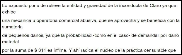 “Lo expuesto pone de relieve la entidad y gravedad de la inconducta de Claro ya que exhibe una mecánica u operatoria comercial abusiva, que se aprovecha y se beneficia con la sumatoria de pequeños daños”, manifestó el juez en uno de los apartados del fallo.