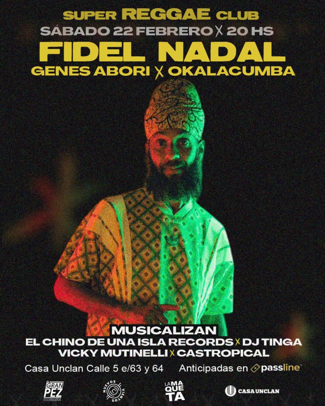 El sábado 22 de febrero, La Plata vibrará al ritmo del reggae con la llegada de Fidel Nadal, uno de los máximos exponentes del género musical en Argentina. El cantante será el gran protagonista del Super Reggae Club, una fiesta musical que comenzará a las 20 horas en Casa Unclan (calle 5 entre 63 y 64). Mirá también en Infocielo, hoy.