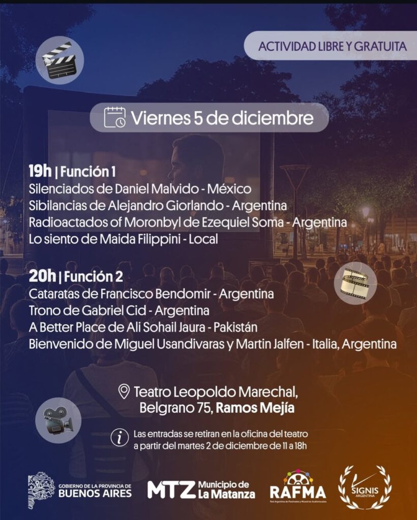 Desde la organización informaron: “Serán tres días llenos de historias que nos invitan a soñar, reflexionar y celebrar el séptimo arte”. También precisaron que las entradas para las funciones del teatro municipal se entregarán de manera anticipada desde este martes entre las 11 y las 16 en las oficinas del establecimiento.