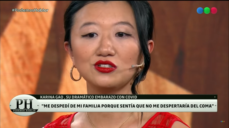 Fue allí cuando Gao pasó al “punto de encuentro” y contó la delicada situación que tuvo que atravesar al ser internada a raíz de una neumonía bilateral provocada por el Covid-19, mientras cursaba el sexto mes de su embarazo.