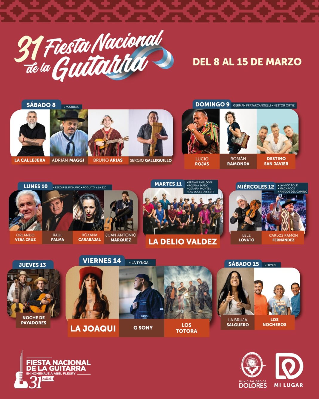 La ciudad de Dolores se prepara para recibir la 31° Fiesta Nacional de la Guitarra, que tendrá lugar del 8 al 15 de marzo de 2025. Este evento, que rinde homenaje al icónico guitarrista dolorense Abel Fleury, promete ser una edición inolvidable gracias a su destacada grilla de artistas y a una programación cultural que combina tradición, música y gastronomía.
