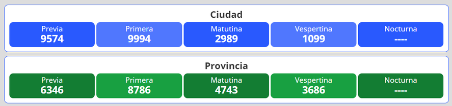 La Lotería ofrece cuatro sorteos diarios de lunes a sábados. La Primera es a las 11.30 horas; Matutino a las 14:00 horas, Vespertino a las 17.30 horas y Nocturno a las 21:00 horas.