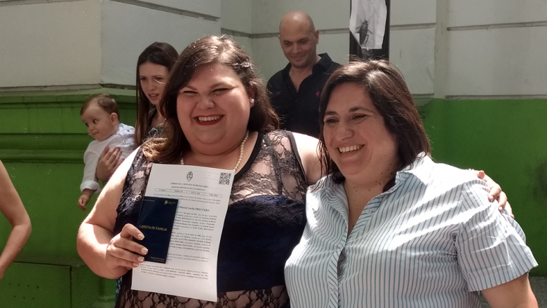 Marcia y Camila son pareja desde hace más de cuatro años y decidieron apostar a formar una familia juntas. Hoy, 17 de octubre, llegaron hasta un registro civil platense para “poner el gancho”. ¿Por qué eligieron casarse en el Día de la Lealtad peronista?