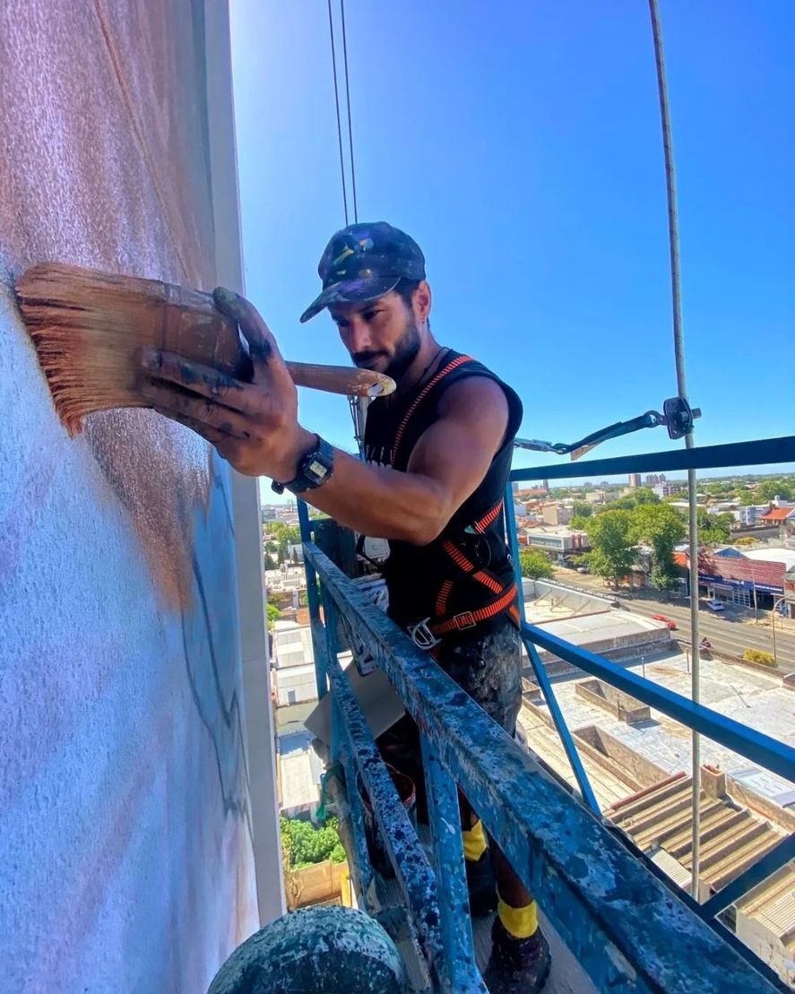 La gran obra de arte se encuentra en las calles San Juan y Colón, en el nuevo edificio Cuarzur V, que -según trascendió- cuenta con 10 pisos de alto y 8 metros de ancho.