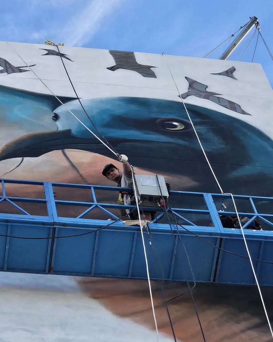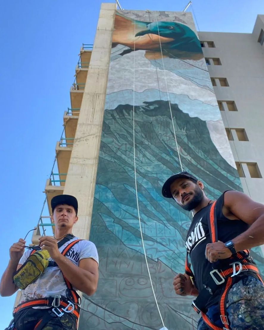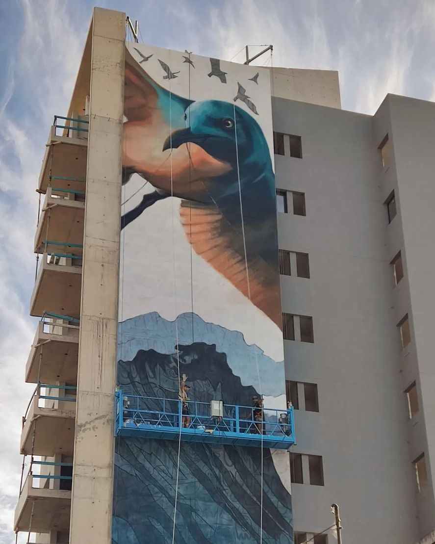 Tal y como se pueden ver en las fotos y los videos de Grupo Sismo en las redes, el mural acaba de completar su primera etapa y representa a la flora, fauna y naturaleza de la ciudad. Es así que en esta primera parte se puueden ver algunas gaviotas y el mar. El resultado es increíble.