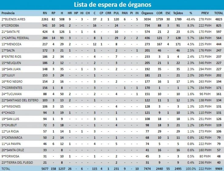 De los 758 trasplantes, 464 fueron renales, 194 hepáticos, 43 cardíacos, 32 renopancreáticos, 14 pulmonares, 6 hepatorrenales, 3 pancreáticos, 1 intestinal y 1 cardiorrenal. A nivel provincial, hubo 266 personas trasplantadas en los primeros meses del año.