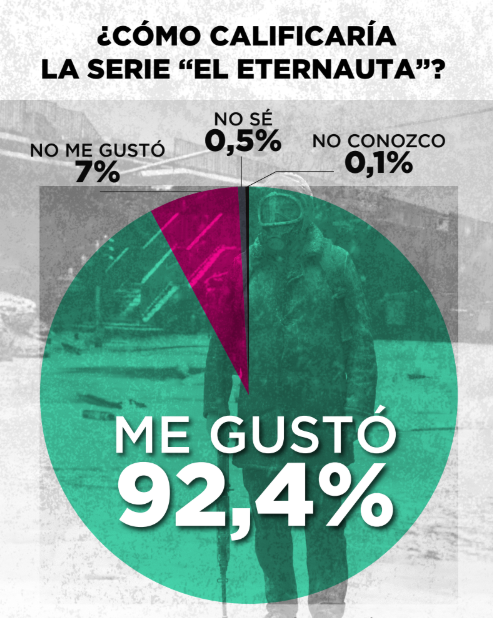 “La serie del Eternauta ya se transformó en un fenómeno local y mundial. Se mantiene en el primer lugar de lo más visto en Netflix desde su lanzamiento en Argentina y en el resto del mundo rankea en las primeras ubicaciones. En ese