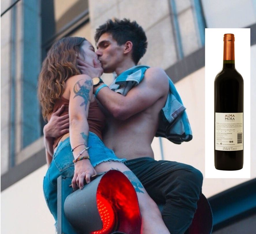 “Te contactamos porque nos cruzamos con las hermosas fotos que sacaste durante el festejo de ayer de Argentina, nos encantó sobre todo la del beso arriba del semáforo. Creemos que es el match perfecto con nuestro actual comercial de Alma Mora el amor y el mundial. Nos encantaría poder compartir tu fotografía en nuestras redes. ¿Te copa la idea?“, dijeron desde el Grupo Peñaflor, propietario de la mencionada bodega.