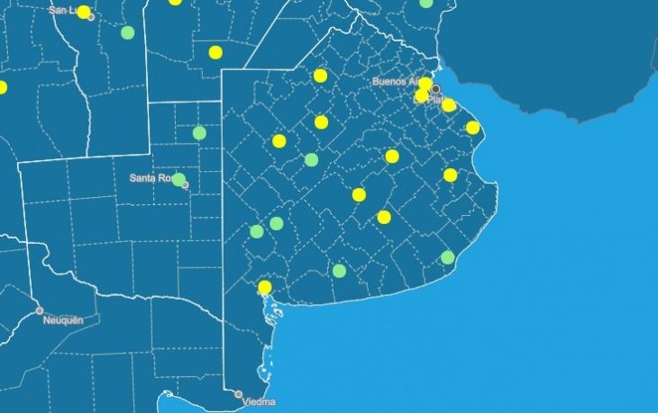 El nivel de riesgo leve a moderado rige actualmente para Bahía Blanca, Las Flores, Tandil, Azul, Dolores, Punta Indio, La Plata, Ezeiza, Pehuajó, 9 de Julio y Junín. Las temperaturas en estos distritos pueden ser peligrosas para la salud, sobre todo en bebés y niños pequeños, mayores de 65 años y enfermos crónicos.