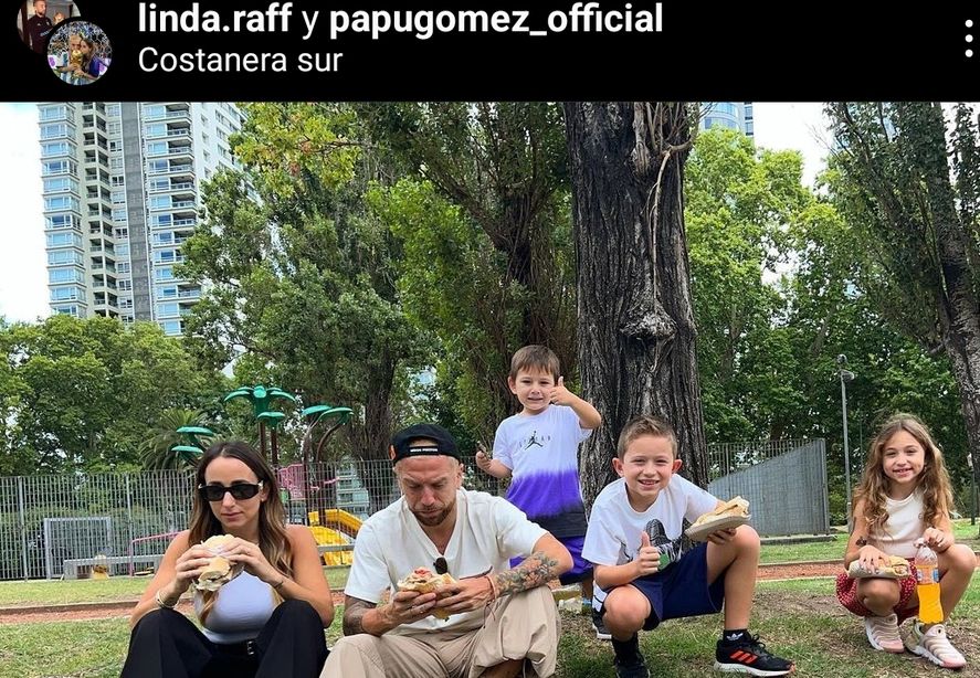 El Mundial terminó pero sus estertores continuarán por largo rato. Hay un sentir masivo y popular de no querer despertar del sueño del campeonato del mundo en Qatar, y los jugadores conspiran para que la pasión y los latidos emocionales del corazón no encuentren rápidamente su culminación. Prueba de ello es el rating magnífico de la repetición de la Final contra Francia durante la Nochebuena, con el guiño de TyC Sports de calcular que exactamente a las 12 de la noche sea el instante en que Lionel Messi levantaría la Copa junto al plantel campeón. Pero además los posteos en redes sociales de los jugadores siguen alimentando una mística que fogonea la “manija eterna”. En el mediodía del domingo 25 y como celebración de la Navidad, el volante de la selección argentina Alejandro Papu Gómez subió a su cuenta de Instagram una fotografía de él, su esposa Linda Raff y sus tres hijos sentados sobre el pasto del boulevard en la Avenida Rafael Obligado en la Ciudad de Buenos Aires, frente a la Costanera sur, en donde los integrantes de su núcleo más íntimo están extasiados cada uno con un sandwich de bondiola de cerdo entre sus manos.