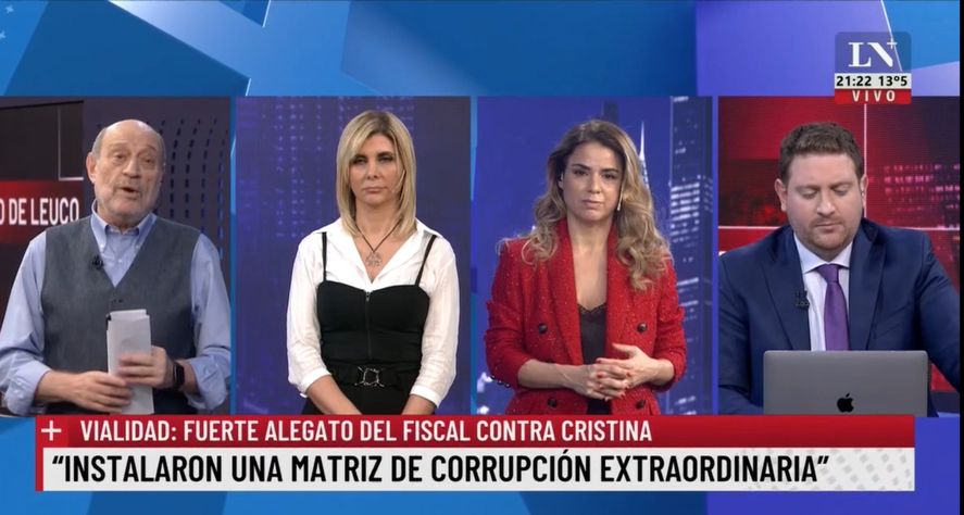 Como si se tratara de un partido de fútbol, el periodismo de las grandes cadenas se está comportando como la ‘barra brava‘ del equipo opositor, y el juicio de la llamada “Causa Vialidad” es el último “partido” en el que La Nación, Clarín y otros medios de comunicación, a través de sus operadores visibles Alfredo Leuco, Jonatan Viale y Eduardo Feinmann, marcan sin vergüenzas ni esbozos de periodismo independiente, sus más trasnochados apetitos por ver en modo cinematográfico a Cristina Kirchner ‘entre rejas‘.