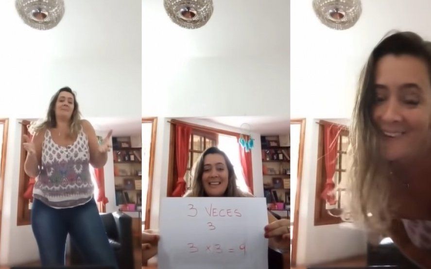 Es que la maestra de 50 años culminó la parodia de una clase virtual de multiplicación con un picante mensaje dedicado a “las mamis” que ayudan a sus hijos con las tareas en plena cuarentena: “Si vos querés que yo te mande otro videíto, pedile a tu marido que ya le mandé muchos”.