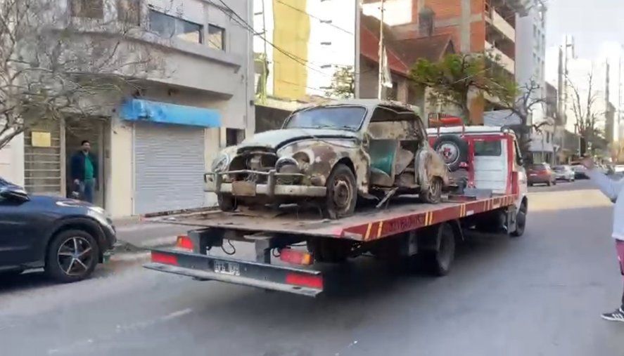 Según pudo verse a través de las fotos que los propios frentistas compartieron a través de las redes, los vehículos que fueron retirados del lugar con ayuda de una grúa eran un Ford Falcon verde y negro y un DKW de color blanco.