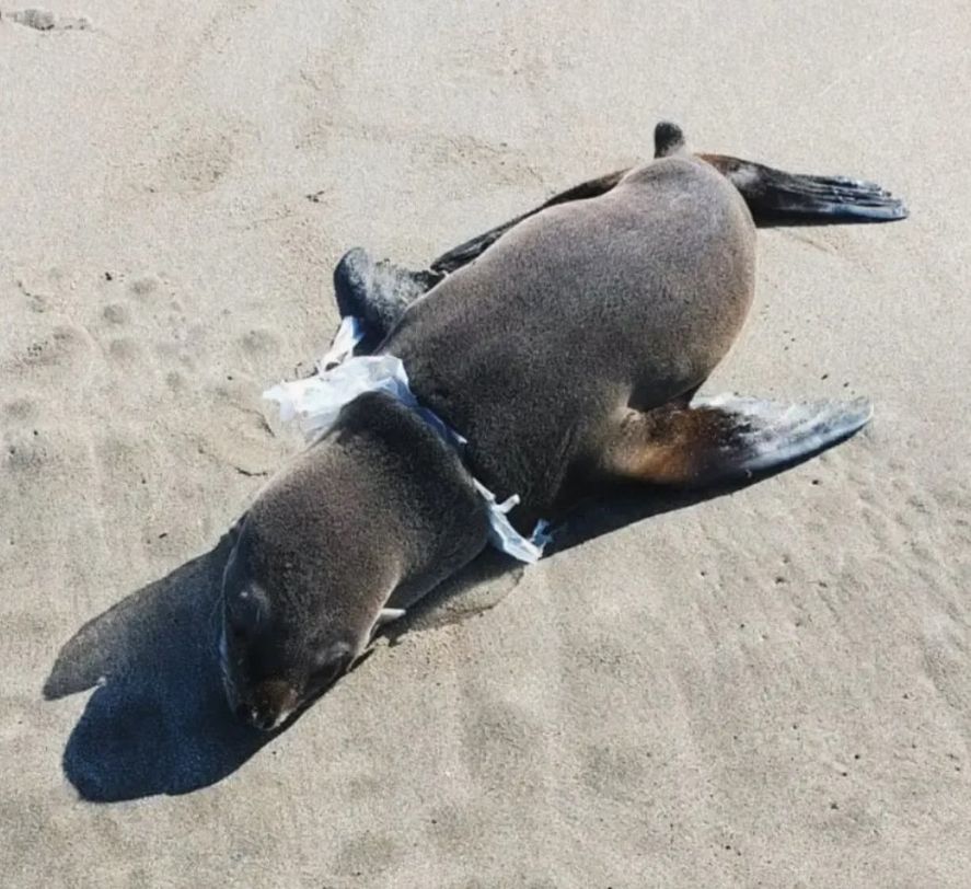 Un lobo marino atrapado en residuos de plástico fue visto por una vecina en una playa de La Caleta, ubicada en la costa bonaerense. La mujer dio aviso, pero el animal fue perdido de vista y allí inició la búsqueda que finalizó en las costas del Balneario San Cayetano, donde finalmente fue liberado al mar.