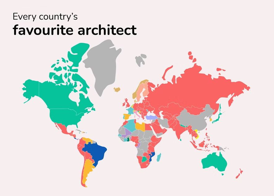 Vale aclarar que si bien el mapa es presentado bajo el título El arquitecto favorito de cada país, el ranking fue formulado de acuerdo al volumen de búsqueda de Google que figura en Google Keyword Planner y excluyó a aquellos que eran más conocidos por otras actividades como el arte, la escultura o la política, por ejemplo, Thomas Jefferson.