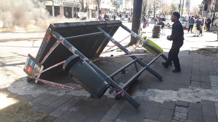 Las fotos que circularon a lo largo del día siembran dudas. En varias se puede ver que los tres caños que sostenían la parada presentan un corte perpendicular y muy prolijo, como si alguien los hubiera atacado con una sierra.