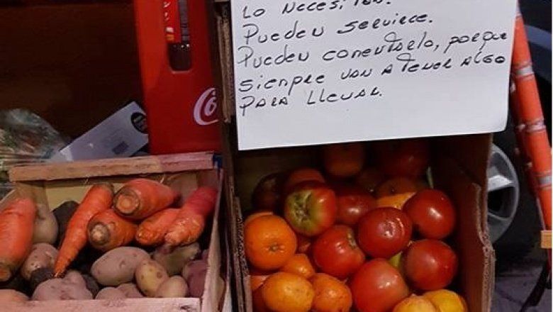“Esto es para dar, o para las personas que realmente lo necesitan. Pueden servirse y comentarlo, porque siempre van a tener algo para llevar”, reza un cartel colocado en el local de Rodríguez al 500.