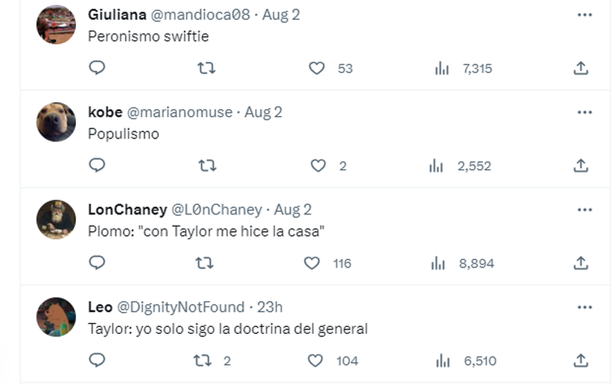 “Que Taylor diga si es peronista” o “peronismo swiftie” son algunas de las famosas frases que se viralizaron en Twitter. Mirá: