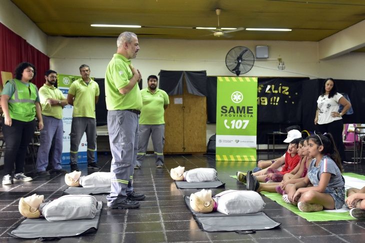 Durante todo el mes de enero, personal especializado del SAME y de la Dirección de Protección Civil municipal desarrollaron jornadas de capacitación sobre Reanimación Cardiopulmonar (RCP), primeros auxilios y prevención de accidentes domésticos; mientras que profesionales de la Secretaría de Salud de la Comuna brindan atención odontológica e inician o completan el calendario de vacunación de los chicos.
