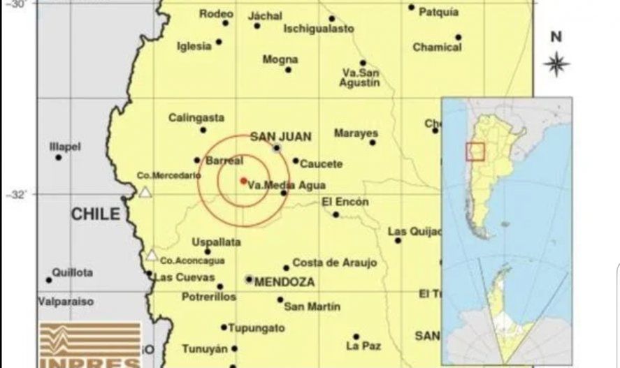 La red sismológica del Instituto Nacional de Prevención Sísmica (Inpres) ubicó el epicentro del movimiento a 54 kilómetros al sudoeste de la Ciudad de San Juan, 48 kilómetros al oeste de la Villa de Media Agua, en el departamento Sarmiento.