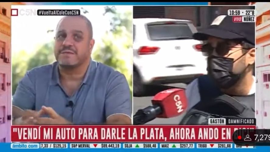 “Gastón es mi nombre. Así es. Estamos acá desde temprano. No aparece nadie. Ayer el señor Leonardo Cositorto rascando la olla, pidiendo 100 dólares de vuelta. Armando otro Ponzi en vivo, prófugo de la justicia y encima da la cara por zoom. Esto es inadmisible“, comenzó diciendo el supuesto damnificado en el móvil de C5N, pero en un tono y con ciertos detalles que daban a percibir que se trataba de una chanza al periodista.