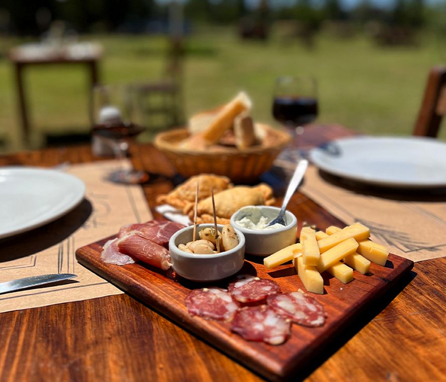 En Chacabuco, el Almacén de Sabores ofrece una variedad de platos exquisitos en un entorno rural. Comienza con una entrada completa de fiambres, quesos regionales, escabeches, dips, bruschettas gourmet y empanadas fritas acompañadas por degustaciones al disco y a horno a leña.