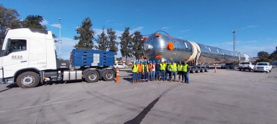 Esta torre estabilizadora forma parte de un conjunto de columnas y equipos que fueron fabricados por AESA en su planta industrial ubicada en Canning, y permitirán adaptar el Complejo Industrial La Plata a las nuevas especificaciones de combustible. “La fabricación de estos equipos demandó 80.000 horas de trabajo de más de 250 trabajadoras y trabajadores directos e indirectos de AESA”, informaron desde la empresa.