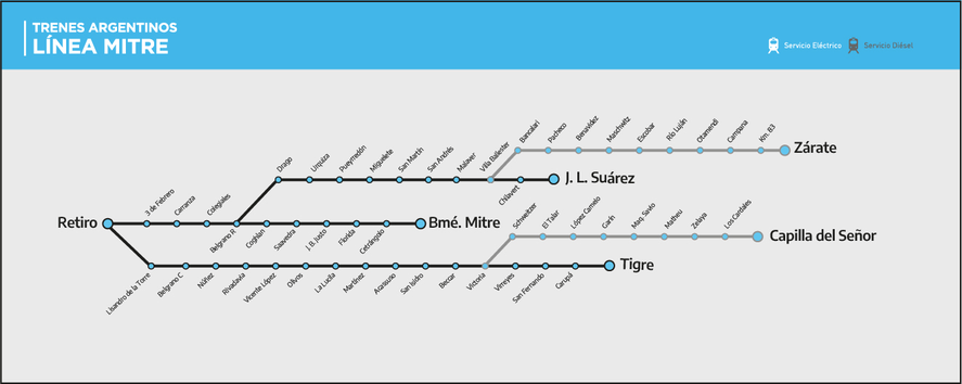 El Tren Mitre conecta la ciudad de Buenos Aires con diferentes municipios del conurbano bonaerense. En el caso del ramal interrumpido esta tarde, afecta a los usuarios que vayan desde la estación terminal Retiro, pasando por 3 de Febrero, Carranza, Colegiales, Belgrano R, Coghlan, Saavedra, J.B. Justo, Florida, Cetránngolo, hasta Bartolomé Mitre.
