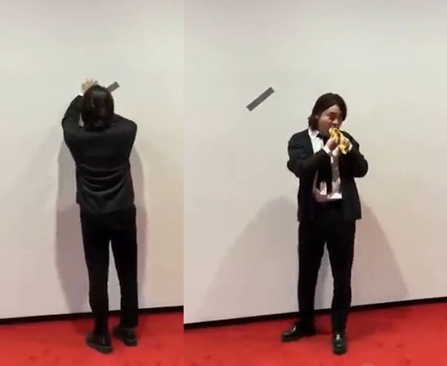 Su valor y notoriedad aumentó cuando el artista David Datuna comió la fruta pegada a la pared en 2019 en una performance que llamó Hungry artista, es decir Artista hambriento.