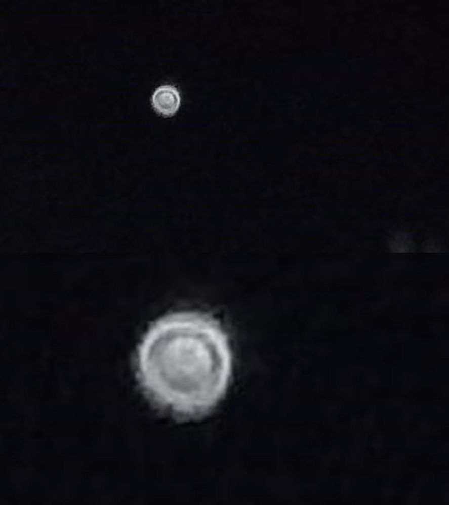 El periodista, analizó el video, en el que no se llega a distinguir de forma muy clara las dimensiones ni la forma del supuesto OVNI; y también una foto que terminó llamándole la atención. “Al agregarle zoom a la imagen, se puede observar cómo se forma una especie de aureola en el centro de lo que sería el Objeto Volador No Identificado”, indicó.