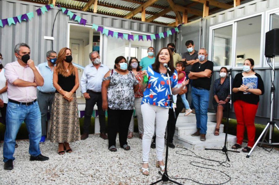 En la localidad de Abasto, periferia de la ciudad de La Plata, instalaron “Casa Abierta”, una casa para asistir a las mujeres en situación de violencia de género, fabricada por Astillero Río Santiago con contenedores.