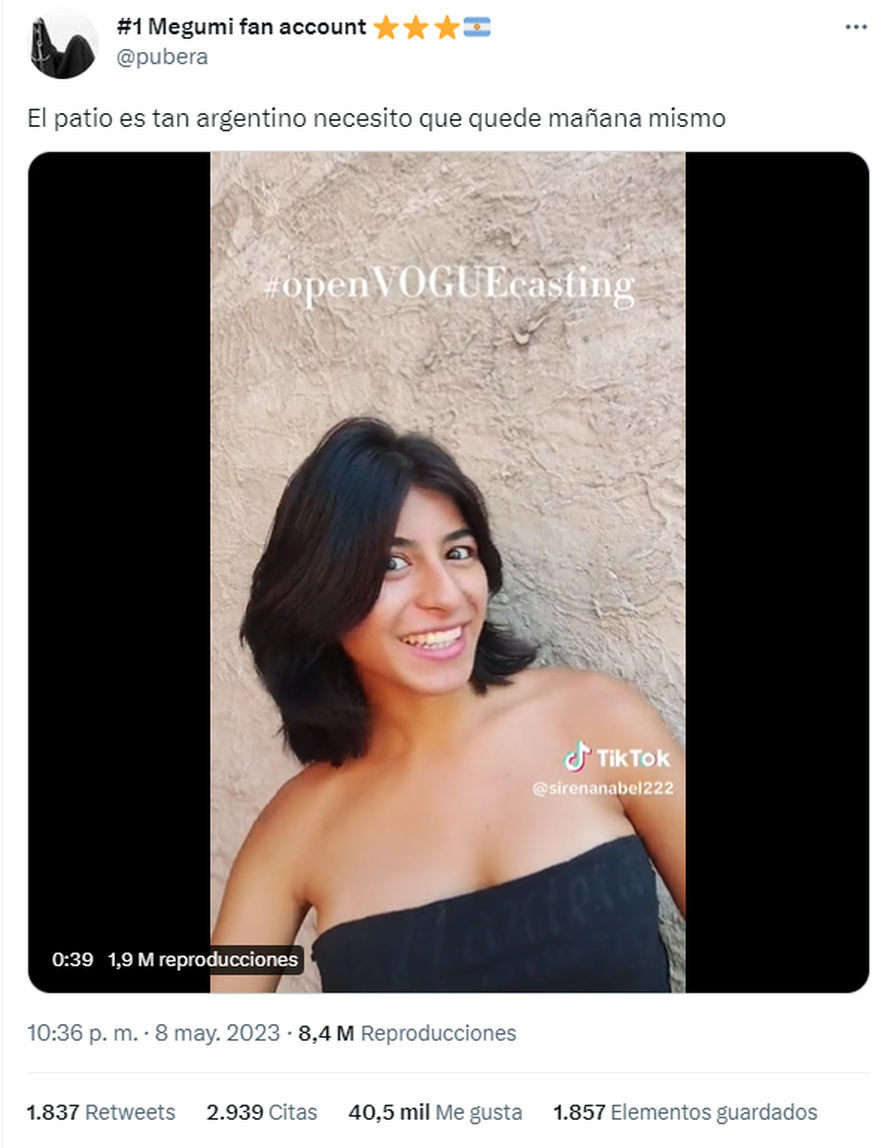 El video enseguida estalló en las redes sociales que se llenaron de comentarios a favor de la modelo: “El patio es tan argentino necesito que quede mañana mismo”, fue uno de los comentarios que más se compartió.