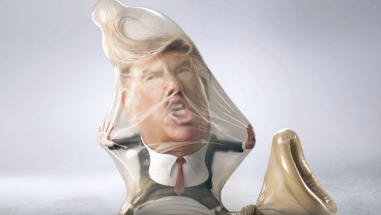 En el aviso se ve de manera extremadamente nítida y realista al presidente de los Estados Unidos, Donald Trump, como si fuera un espermatozoide luchando por salir del condón.